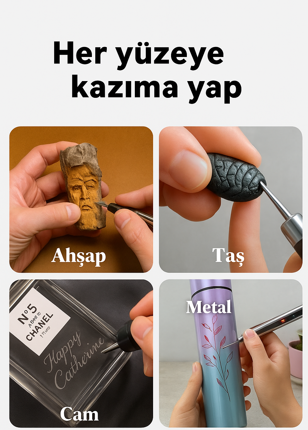 Customizer Pen ile dilediğiniz yüzeyi kolayca kişiselleştirin.Ahşap, cam, taş veya metal fark etmeksizin.